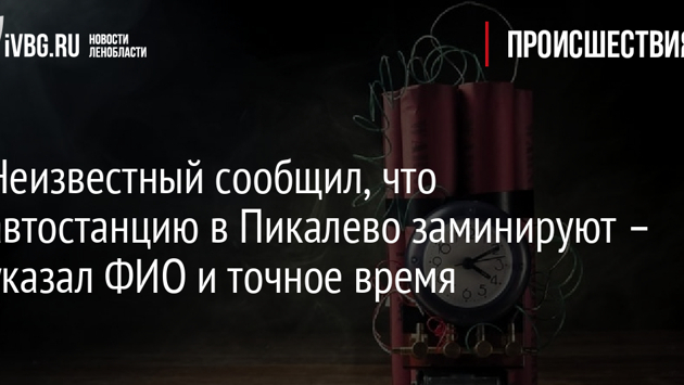 28 февраля около 02:00 в экстренные службы сообщили, что в этот же день, в 15:00, будет заминирована автостанция в городе Пикалево в Бокситогорском районе. Звонивший рассказал, что это сделают люди на автомобиле с номерами Вологодской области. В ответ на просьбу представиться назвал ФИО, а также продиктовал номер мобильного телефона и адрес в Пикалево, по которому его можно найти. Сотрудники полиции проверяют информацию.