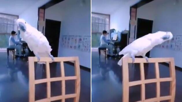 Попугай исполнил изящный танец под аккомпанемент фортепиано