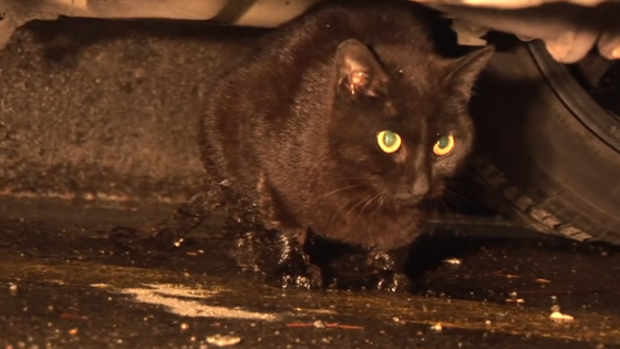 Кошка сидела под машиной, оберегая от людей черный сверток. Когда люди посмотрели что там, они не поверили своим глазам