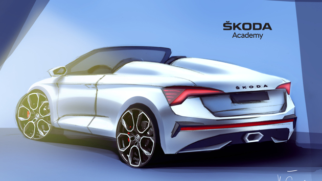 В июне текущего года чешский концерн Skoda продемонстрирует концептуальную версию кабриолета, спроектированного на платформе модели Scala. Эту иномарку сконструировала группа студентов из 20 человек, который на данный момент учатся в техническом училище Skoda Academy. Недавно концерн поделился со своими поклонниками дизайн-скетчами разработки начинающих разработчиков авто. Авто без верха на «тележке» от иномарки Scala окажется седьмым по счету концепт-каром, созданным во время образовательной программы. С учениками тесно взаимодействуют опытные дизайнеры и инженеры автогиганта из Чехии, создающие серийные машины марки, в числе которых и шеф-дизайнер Skoda Оливер Стефани. На сегодняшний день проект пребывает на стадии эскизов, но производитель его уже позиционирует, как «впечатляющий». По рендерным можно сказать о том, что хэтчбек оставили без крыши и дверей для пассажиров второго ряда. Новинка приобретет два обтекателя, а в центре заднего бампера находится выхлоп в форме шестиугольника. Вероятно, что во время переработки новинка без верха приобретет другие колеса и оформление внутреннего пространства. Читайте также о том, что Skoda приступила к тестированию нового электрического паркетника под именем Enyaq.