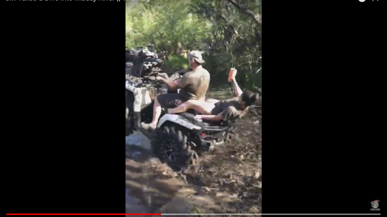Пользователей Сети развеселило видео, снятое недалеко от города Аркадия (штат Флорида). На кадрах видно, как парень решил прокатить девушку на квадроцикле по водоему. Пассажирка удобно расположилась позади водителя, прихватив с собой стаканчик с напитком, видимо, полагая, что путешествие будет достаточно комфортным и приятным. Однако мужчина оказался любителем острых ощущений и резко рванул машину с места. В результате его пассажирка оказалась погружена с головой в огромную грязную лужу. Какое-то время она беспомощно барахталась в грязи, но затем поспешила выйти на сушу. Примечательно то, что девушка, невзирая на все происходящее, так и не рассталась со стаканчиком любимого напитка.