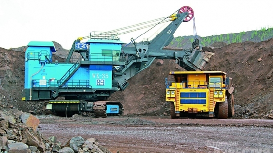 Новый экскаватор WK-35 отличается своими габаритами и производительностью: вес - 1200 тонн, объем ковша - 25 кубометров, что позволяет в течение полутора минут загрузить 220-тонный БелАЗ, кузов которого вмещает 4 ковша мощной машины. Современное оснащение обеспечивает машинисту панорамный обзор, кресло на пневмоподвесках снижает вибрацию, кондиционер с фильтрами улавливает пыль. Первый такой грузоподъемности в истории предприятия 25-кубовый исполин начал работать в карьере в канун 60-летия со дня добычи первого ковша руды Михайловского месторождения. Его ковш ровно в 50 раз больше, чем у экскаваторов, трудившихся на добыче первой руды комбината.