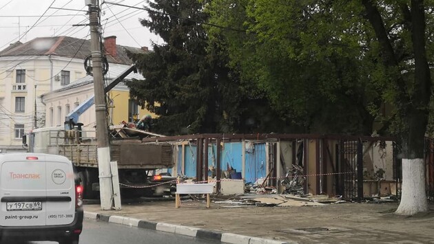 Этот стационарный торговый павильон располагался несколько лет фактически на остановке на Тверском проспекте. За время работы он несколько раз менял профиль: здесь продавали и ювелирные украшения, и цветы и даже был мясной магазинчик. Теперь павильон снесли, на освободившемся месте установят остановочный комплекс. В целом, суда по комментариям в соцсетях, жители одобрили решение администрации убрать ларёк, как его назвали "бельмо на центральной улице города", поскольку он занимал слишком много места на тротуаре и мешал движению пешеходов. - Наконец-то это халабуду убрали. Был бы он нормально вписан в линию улицы, может, и было бы жалко. А так он сужал пространство на остановке, - написал Антон в комментариях к автору поста в Фэйсбуке. Правда, часть жителей всё же жалеет предпринимателя, потерявшего рабочее место и доход. Фото Антона Стамплевского.