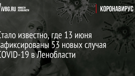Стало известно, где 13 июня зафиксированы 53 новых случая COVID-19 в Ленобласти