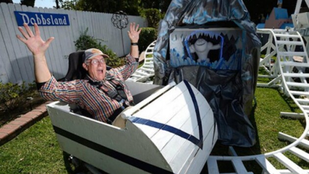 Устали стоять в очередях в парках развлечений? Калифорниец Стив Доббс, например, устал. Более того, он хотел, чтобы у его внуков была причина почаще навещать дедушку и проводить с ним время, а этого не так уж просто добиться, живя неподалеку от Диснейленда. Источник: mymodernmet.com Имея 30-летний опыт работы инженером в компании Boeing, Стив решительно начал действовать. Сначала он установил старых кукол, которых его жена собралась уже было выбрасывать, внутри туннеля, сделанного из старых рождественских пазлов. Потом Стив решил проложить через туннель пути для детской железной дороги и, увидев радостные лица внуков, понял, что движется в правильном направлении. В Доббсленде, как Стив решил назвать мини-парк развлечений на своем заднем дворе, несколько тематических аттракционов, так что внукам даже есть из чего выбрать. Поклонники «В поисках Немо» могут проехаться по парку на подводной лодке, сделанной из старых мусорных ведер, через океан из ПВХ-труб и большого голубого тента. В центре двора возвышается замок Спящей красавицы, а последнее построенное в парке сооружение впечатляет особенно: девять студентов Доббса помогли ему соорудить американские горки, тележки которых могут разгоняться до 19 километров в час.
