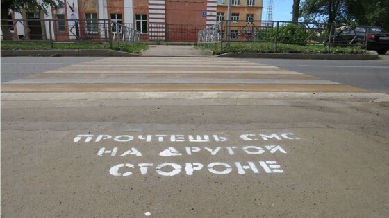 Надписи призваны напомнить о правила безопасного поведения на дороге. Предупреждающие надписи на тротуарах будут напоминать кировским пешеходам о необходимости безопасного поведения на дороге. В рамках всероссийской кампании «Внимание на дорогу» кировская Госавтоинспекция совместно с волонтерами провели акцию «Надписи безопасности». В Кирове Госавтоинспекция совместно с волонтерами провели акцию «Надписи безопасности». Рядом с местами массового скопления людей и вблизи образовательных учреждений с помощью специальной краски и трафаретов «Прочтешь СМС на другой стороне», «Посмотри налево, посмотри направо» были нанесены предупреждающие надписи. Необычные информационные сообщения рассчитаны на привлечение внимания пешеходов, в том числе детей, и призваны напомнить о необходимости безопасного поведения на дороге.