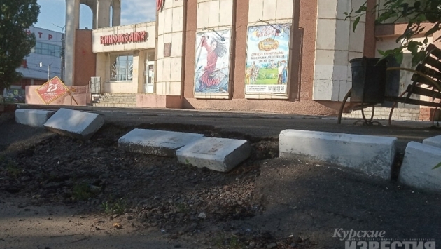 В Курске рядом с кинотеатром "Сказка" побелили разбитый бордюр, который отделяет раскуроченный асфальт. Об этом в редакцию "Курских известий" сообщили жители Северо-западного района.