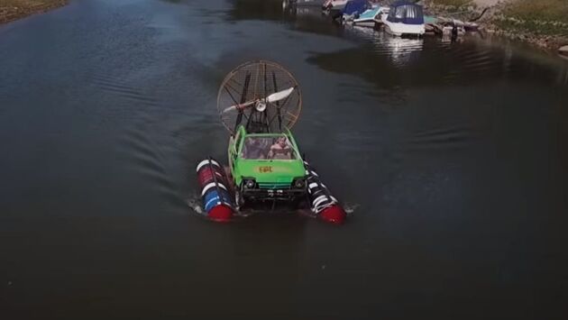 Энтузиасты с канала «Гараж 54» сконструировали хэндмейд-катер на аэротяге из старой советской «Оки», - рассказывает «Российкая газета». Плавучесть конструкции обеспечили восемь пустых 200-литровых бочек, легко удерживающих на воде саму «Оку», а также одного-двух пассажиров. За аэротягу отвечает огромный вентилятор, для установки которого пришлось спилить заднюю часть кузова машины. Маневрировать решили не с помощью традиционного судового киля, а зафиксированными на вентиляторе рулевыми рейками. Со второй попытки катер все-таки поплыл или, как сказали бы бывалые моряки, пошел. Ранее тюнеры создали светящийся сюрреалистичный УАЗ.