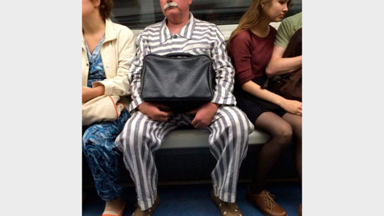 В Москве одетый каторжником усач прокатился на метро и удивил пассажиров