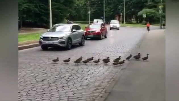 На проспекте Мира утки перекрыли движение транспорта. Опять. Видео того, как выводок пернатых переходит дорогу, выложили в сообществе автомобилистов Калининграда и области во «Вконтакте». Многочисленное утиное семейство совершенно спокойно и даже как-то обыденно идёт к своей цели. Перейдя дорогу, птицы преодолевают ограждение и продолжают свой путь к ближайшему водоёму. В комментариях пользователи пишут, что такую картину здесь наблюдают довольно часто. Видимо, пернатые живут неподалёку. Ранее kaskad.tv писал о том, как в калининградскую квартиру заползла змея.