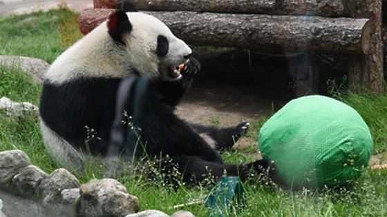 Панде из Московского зоопарка Диндин 30 июля исполнилось три года, а Жуи в пятницу исполнилось четыре года, говорится в сообщении пресс-службы столичного зоосада. Между тем в Московском зоопарке они прожили уже больше года. За это время они набрали 20 килограммов. Сейчас Жуи весит около 120 килограммов, а Диндин – около 80. «Панды быстро адаптировались, чему поспособствовала мягкая зима, им очень понравился снег. Как-то Жуи забрался на дерево и зачарованно смотрел на снежинки, а Диндин с удовольствием уничтожила снеговика», - говорится в сообщении. В день рождения не обошлось без подарков. Так, Жуи досталась бамбуковая машина. Войдя в вольер, он сразу же пошел к ней, уселся на водительское сиденье и даже взялся за руль. Внутри подарка были запрятаны вкусности – яблоки и морковка. А Диндин получила на праздник куклу из бамбука. В одежде куклы была запрятана морковка, а под платьем – бамбук. Также обоим пандам достался торт из арбуза с ледяной цифрой наверху – 3 и 4 года. В лед были вморожены ягоды и фрукты.