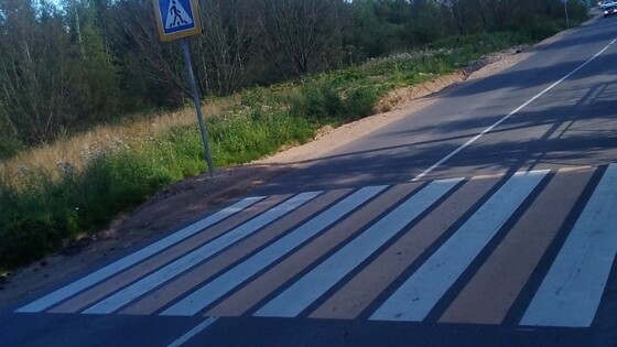 Местные жители недоумевают, что за пешеходный переход такой на днях появился в их городе. На ул. Узкоколейная напротив школы на проезжей части оборудовали по всем правилам пешеходный переход: нарисовали "зебру", установили знаки. Но ведёт он не на тротуар, а в канаву. Возможно, рабочие просто не успели все доделать и привести в порядок тротуар. Напомним, недавно подобный пешеходный переход был замечен в Ржевском районе в деревне Глебово. Там переход вёл прямо в борщевик. Фото группы "Вышний Волочек".