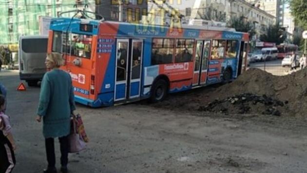Троллейбус провалился по улице Бутина в Чите. Об этом 2 сентября сообщается в группе Регион-75 ВКонтакте. «В нашем городе настолько все перекопали, что даже троллейбус застрял»,-рассказал очевидец корреспонденту ZAB.RU Очевидец сообщил, что троллейбусу удалось выехать из ямы.