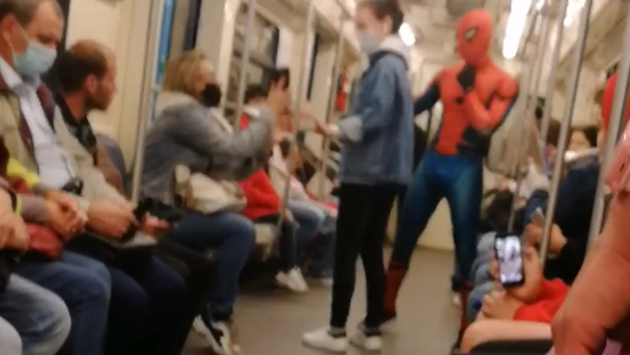 «Человек-паук» потанцевал с пассажиркой московского метро и попал на видео