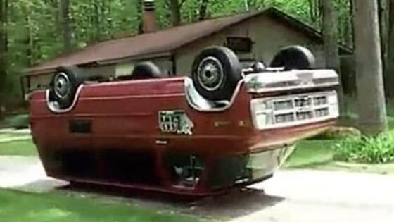 Сотрудник американского автогиганта GМС по имени Коди, проживающий в небольшом населённом пункте в штате Мичиган несколько лет назад удивил мировую общественность, заставив передвигаться перевёрнутый фургон 1985 года выпуска. Видеоклип, снятый недавно на юго-востоке Мичигана, показывает, как трое людей входят через задние двери в автомобиль, а снимающий комментирует, что экстремалы просто собираются прокатиться в перевёрнутом фургоне и транспортное средство действительно отъезжает. Со слов создателя необычного транспортного средства, чтобы воплотить в жизнь сумасшедшую задумку, фургон был буквально выпотрошен изнутри. В крыше проделаны отверстия, чтобы можно было установить четыре новых колеса, оставив зазор всего 10 сантиметров между кузовом и землёй. Затем были установлены новые сиденья, которые были прикручены к крыше, ставшей полом. Во всех старых окнах были установлены затемнённые стёкла, чтобы скрыть проведенные в салоне работы. Боковые панели были сняты и установлены на новые петли. Дверь стала открываться вертикально, напоминая "крыло чайки". По информации местных СМИ, транспортное средство имеет официальное разрешение для передвижения по автомобильным дорогам и оно часто используется в различных шоу. Недавно создатель перевёрнутого фургона опубликовал в сети ролик, на котором видно внутреннее убранство салона необычного автомобиля.
