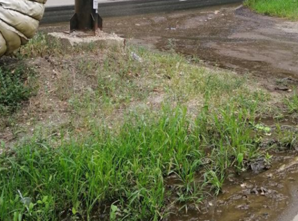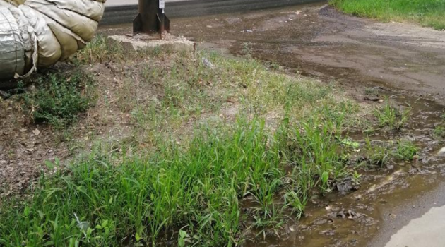 В поселке Солнечный вода затопила дорогу с тротуаром