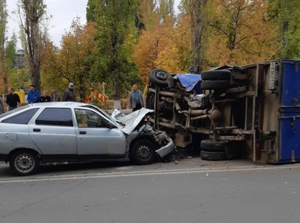 Очевидица: Балаковский полицейский протаранил грузовик «Почты России», который проехал через сплошные