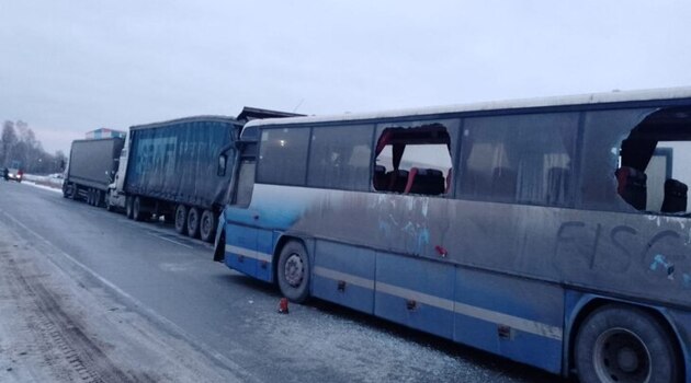 Автобус с людьми и две фуры попали в ДТП под Новосибирском