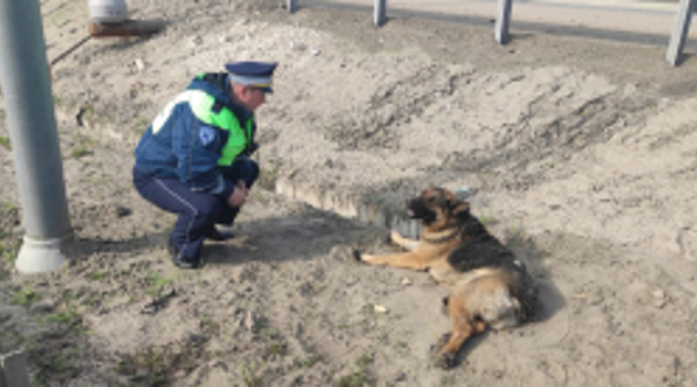 В Подмосковье сотрудник Госавтоинспекции доставил раненую собаку в ветклинику