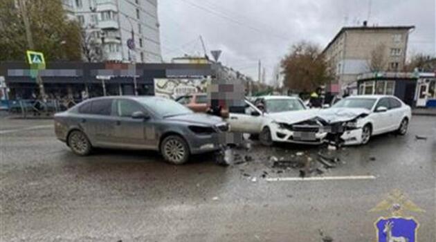 Два человека пострадали при столкновении Lada Granta и двух Skoda в Самаре