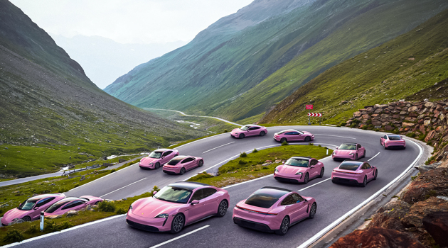 Как мог бы выглядеть мир, в котором все ездят на розовых Porsche Taycan
