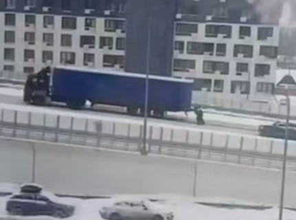 Сотрудник ГАИ толкал фуру в гору в подмосковном Реутове