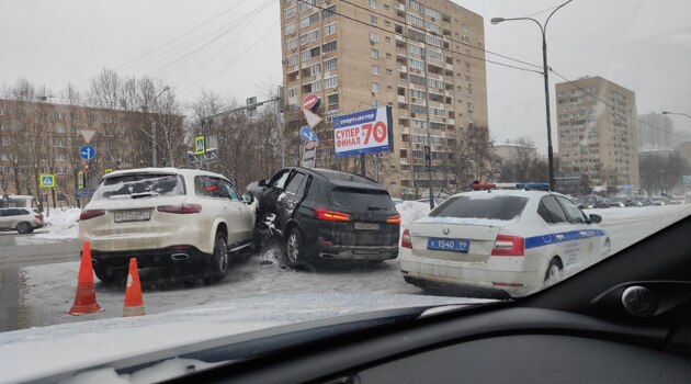 В Москве Mercedes протаранил BMW X5 на большой скорости