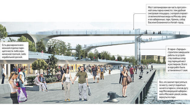 Мост парит над рекой. Рабочие начали заливать монолит смотровой площадки в парке «Зарядье»