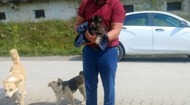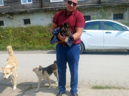 В Челябинской области полицейские спасли щенка, который увяз в гудроне
