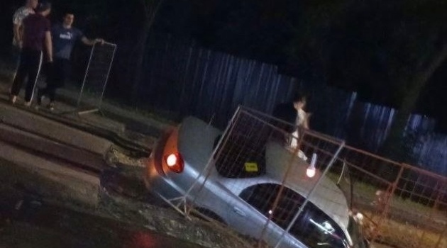 Машина улетела в яму на улице Горной в Нижнем Новгороде