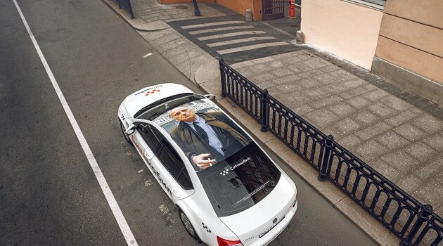 Закрашенное граффити с Бродским в Петербурге перенесли на крышу такси