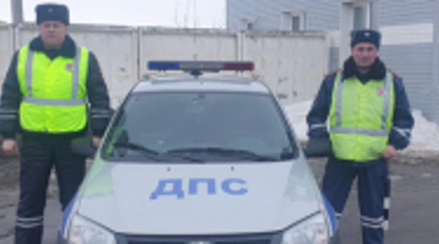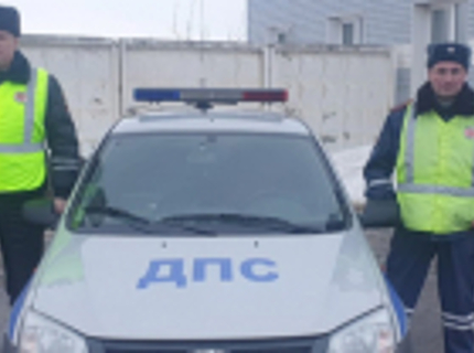 В Вологодской области сотрудники ГИБДД помогли водителю, у которого лопнуло колесо на автомобиле