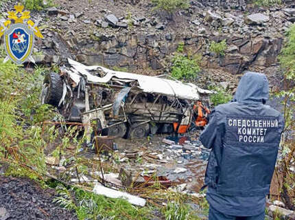Момент падения с обрыва автобуса с вахтовиками в Якутии попал на видео