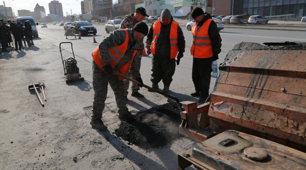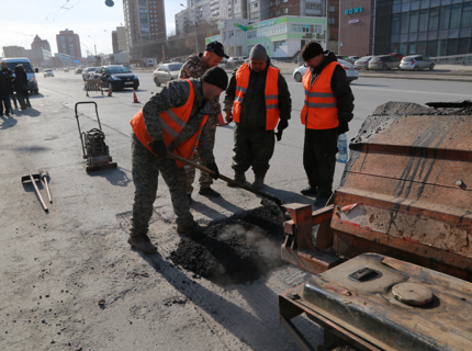 В новосибирской Дзержинке рециклером отремонтировали 400 квадратных метров дорог