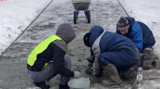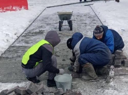 В Кургане греют землю для укладки тротуарной плитки в снег