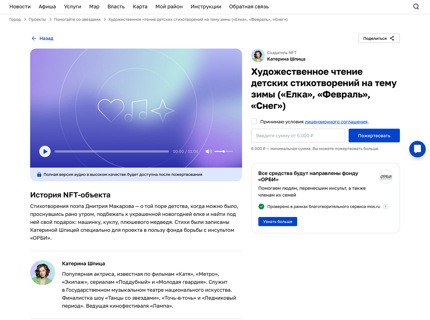Благотворительный NFT-проект заработал на портале мэра и правительства Москвы