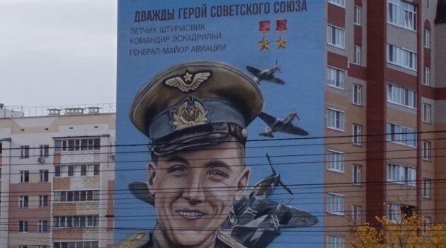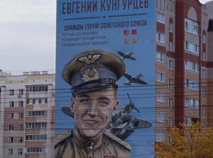 Портрет лётчика Евгения Кунгурцева появился на фасаде дома на одноимённой улице в Ижевске