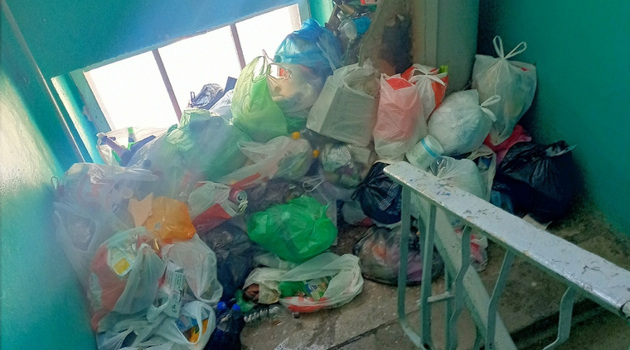 Жители челябинского города превратили лестничную площадку в стихийную свалку