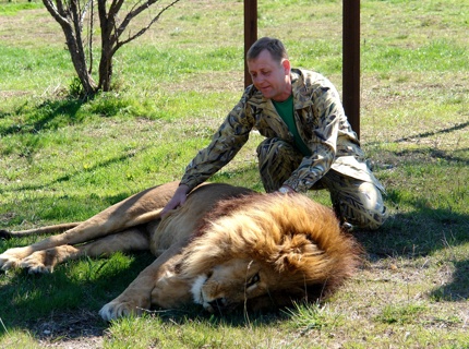 Курянин объяснил, почему лев в его парке укусил посетительницу