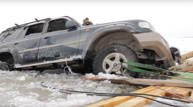 Сразу завелся: застрявший в ледяном плену под Новосибирском Land Cruiser спасли