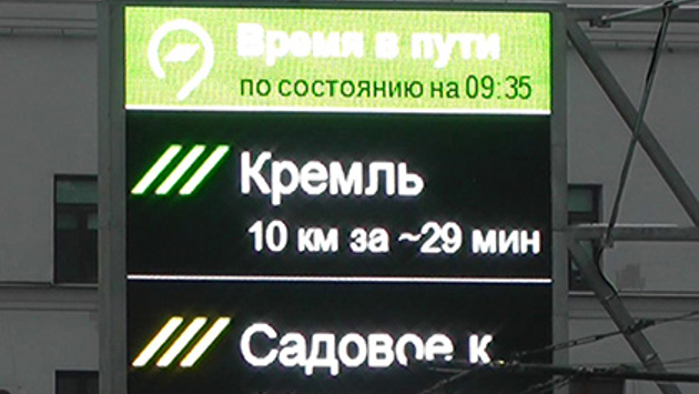 Информацию об обстановке на дорогах Подмосковья будут выводить на электронные табло, расположенные вдоль столичных трасс. Об этом рассказал заместитель руководителя Центра организации дорожного движения (ЦОДД) Москвы Александр Поляков, передает m24.ru. «Таким образом мы сможем информировать москвичей, выезжающих за город, о ситуации на дорогах за пределами МКАД», — пояснил Поляков. По его словам, ЦОДД начал сотрудничать с Центром безопасности дорожного движения Московской области. Город будет получать сведения о ситуации на дорогах Подмосковья, в частности о заторах, перекрытиях и других затруднениях движения за пределами Москвы. Электронные табло установлены вдоль Третьего транспортного кольца, МКАД и Садового кольца. Они показывают расчетное время пути до вокзалов, Кремля, станций метро, аэропортов, данные о заторах и вариантах объезда пробок, среднюю скорость движения. Кроме того, на экраны выводятся данные о подтоплениях и об угнанных автомобилях (марка, цвет, номер машины, телефон владельца). Данные о трафике фиксируются и передаются на все экраны с помощью 7 тысяч датчиков, расположенных на Волоколамском, Можайском и Ленинградском шоссе, а также на Садовом кольце и МКАД. Информация о пробках обновляется каждые пять минут. Всего в Москве установлено 150 таких устройств. На МКАД скоро появится еще 21 информационный щит. Электронные табло на трассах Москвы — совместный проект московского правительства и сервиса «Яндекс-пробки». Они начали работать летом 2014 года.