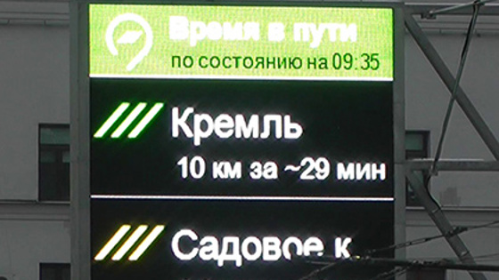 Информацию об обстановке на дорогах Подмосковья будут выводить на электронные табло, расположенные вдоль столичных трасс. Об этом рассказал заместитель руководителя Центра организации дорожного движения (ЦОДД) Москвы Александр Поляков, передает m24.ru. «Таким образом мы сможем информировать москвичей, выезжающих за город, о ситуации на дорогах за пределами МКАД», — пояснил Поляков. По его словам, ЦОДД начал сотрудничать с Центром безопасности дорожного движения Московской области. Город будет получать сведения о ситуации на дорогах Подмосковья, в частности о заторах, перекрытиях и других затруднениях движения за пределами Москвы. Электронные табло установлены вдоль Третьего транспортного кольца, МКАД и Садового кольца. Они показывают расчетное время пути до вокзалов, Кремля, станций метро, аэропортов, данные о заторах и вариантах объезда пробок, среднюю скорость движения. Кроме того, на экраны выводятся данные о подтоплениях и об угнанных автомобилях (марка, цвет, номер машины, телефон владельца). Данные о трафике фиксируются и передаются на все экраны с помощью 7 тысяч датчиков, расположенных на Волоколамском, Можайском и Ленинградском шоссе, а также на Садовом кольце и МКАД. Информация о пробках обновляется каждые пять минут. Всего в Москве установлено 150 таких устройств. На МКАД скоро появится еще 21 информационный щит. Электронные табло на трассах Москвы — совместный проект московского правительства и сервиса «Яндекс-пробки». Они начали работать летом 2014 года.