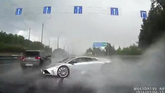 В Истринском районе Подмосковья автомобиль Lamborghini попал в аварию, видеозапись которой была опубликована на Youtube. ДТП произошло на Новорижском шоссе. Двигавшуюся на высокой скорости машину занесло на мокрой дороге, после чего Lamborghini врезался в кроссовер Peugeot и влетел в отбойник. В результате происшествия никто не пострадал.