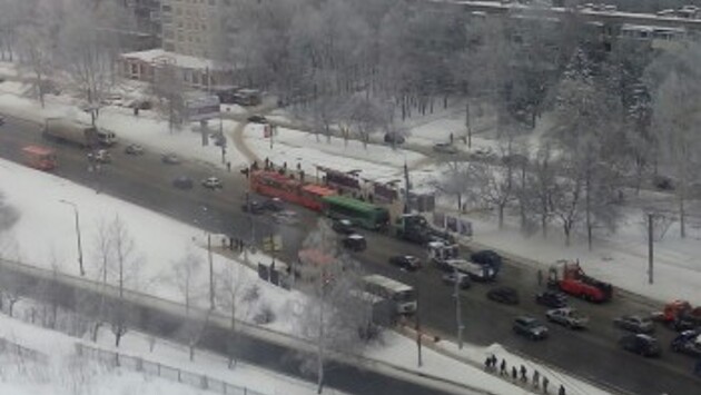 Шесть человек пострадали при столкновении погрузчика, двух автобусов и троллейбуса на проспекте Гагарина (ВИДЕО)