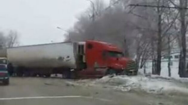 Сегодня днём. 12 января на Московском шоссе в Засвияжском районе Ульяновска произошло ДТП – тягач с фурой занесло на дороге во время движения, развернуло почти на 180 градусов и выбросило на обочину. Тяжёлую махину смог остановить только огромный сугроб на краю дороги. К счастью, обошлось без пострадавших. Обстоятельства аварии устанавливаются.
