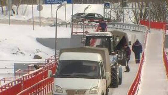 Ослабление морозов избавило жителей Коломенского района Подмосковья от сильных неприятностей. У посёлка Черкизово восстановлено автомобильное движение по понтонному мосту через Москву-реку. Из-за низкой температуры лёд едва не разрушил плавучее сооружение, и его пришлось перекрыть. А это — кратчайший путь в райцентр для машин, в том числе для экстренных служб. - Мост не работает, на машине мы не можем проехать. Мы ребенка не можем отвезти. Пройти нельзя проехать: понтонный мост закрыт. В морозы через Москву-реку добраться из Черкизово в деревню Пески можно только пешком. "Ну, пешком — мне надо там забирать человека больного, я не просто так еду-то!" — говорит Николай Осокин. Для жителей этот мост — как дорога жизни. Без него соседние деревни буквально отрезаны друг от друга. По переправе добираются и на работу в ближайшие поселки, и ездят в соседний город — Коломну. Это — и кратчайший путь в экстренных случаях. "Если экстренное что-то случается с человеком — получается, что нас везут по кругу. Понтонный мост если закрывается — у нас уже всё", — говорит жительница Песков Оксана Казанская. Закрылся, не успев открыться после реконструкции — ремонтировали мост с мая 2016-го. Все это время людей переправляли на другой берег на катере. Зимой же это невозможно, поэтому приходится добираться в объезд. Так, на дорогу до соседнего поселка они тратят почти час. - По мосту я еду пять минут — пять километров. Виной всему — сильные морозы. Из-за них толстый слой льда на этом участке Москвы-реки тронулся, начал двигаться вместе с мостом и чуть не унес его с собой. Специалисты, дежурившие на участке, вовремя это заметили и экстренно перекрыли движение. "Открылся замок, который держит мост. Если бы вовремя не остановили, мост мог самопроизвольно открыться по течению, тогда могли бы пострадать и люди, и автомобилисты", — говорит руководитель ГУП МО "Луховицкое ДЭУ" Сергей Потапов. Подобные понтонные мосты — сооружения особенные. Строят их там, где невозможно установить опоры или нецелесообразно строить балочный мост из-за сильного разлива реки. Но такие конструкции требуют особого внимания. "Условия меняются очень быстро — уровень воды, наличие или отсутствие ледяного покрова. Всё это влияет и на наши сооружения", — говорит главный инженер ГУП МО "Луховицкое ДЭУ" Виталий Федичкин. Специалисты в поселке Черкизово поставили снесенный мост на место и уже восстановили автомобильное движение.