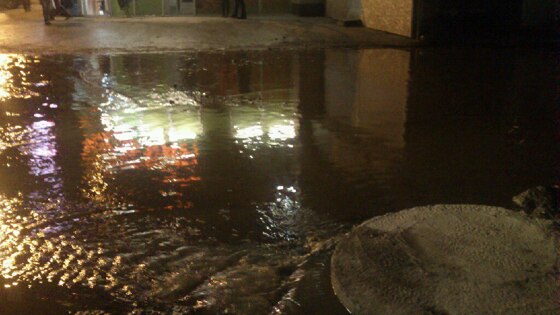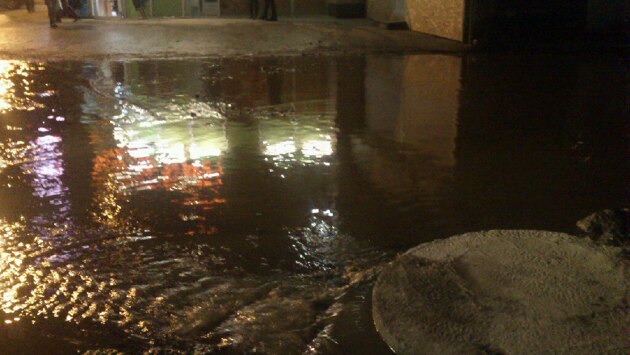 Краснодар. 12 янв. – Новая Кубань. Очевидцы прислали в редакцию Новой Кубани фото с места событий. На пересечении ул. Гомельской и Агрохимической из канализационного люка активно пребывает на поверхность жидкость, имеющая неприятный запах. Вода льётся как на тротуар, так и на проезжую часть. ; Из-за подтопления на дороге уже затруднено движение автомобилей и образуется пробка. ; Местные жители вынуждены преодолевать грязную лужу по дороге домой.