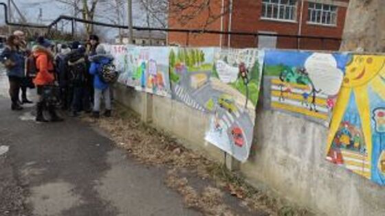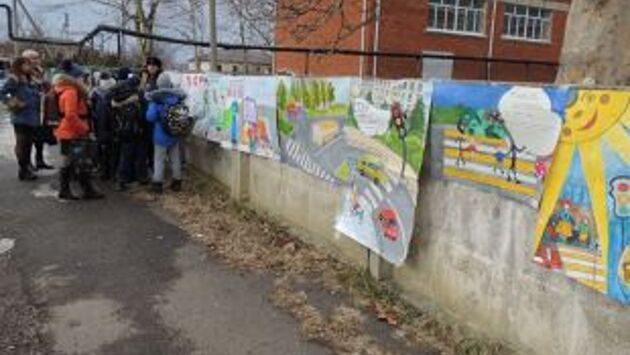 Галерею дорожной безопасности нарисовали на стене школьного забора