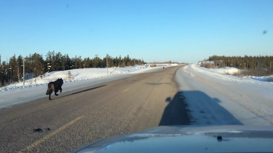 Многие трассы на севере Канады проходят вдоль совершенно диких участков леса или тундры. Поэтому встретить дикого зверя тут - не удача, а вполне банальное событие. Но только не в нашем случае. На трассу рядом с автомобилем выскочил огромный волк. Представьте, что могло произойти, если бы минутой раньше водитель просто вышел из машины на обочину покурить... Подписывайтесь на нас в Facebook и Вконтакте!