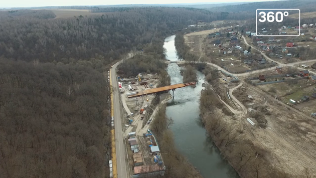 Реконструкция моста через реку Осетр продолжается возле деревни Берхино в Луховицком районе. В работах задействовано 54 человека и 10 единиц спецтехники. Коптеры "360" пролетели над стройкой. Специалисты уже выполнили работы по переустройству инженерных сетей и монтажу опор. Полностью завершить надвижку металлических конструкций пролета планируют к концу мая. Общая протяженность участка реконструкции составит 730 метров, в том числе длина моста — 120 метров. Машины смогут двигаться по двухполосному мосту со скоростью не выше 60 километров в час.